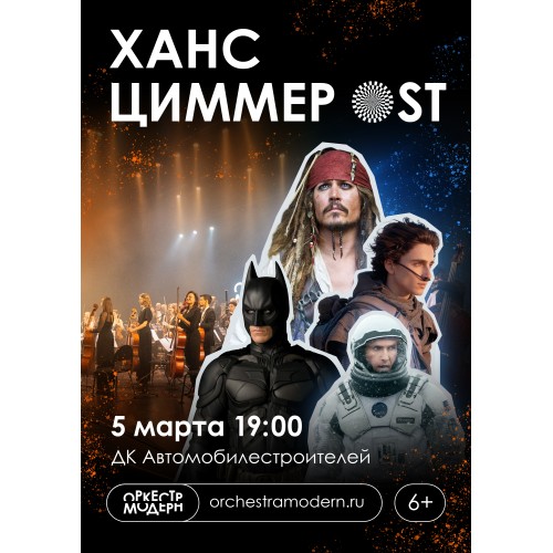 Оркестр сыграл больше 50 концертов «Ханс Циммер OST» и в этот раз выступит в расширенном составе — 35 музыкантов и с обновлённой программой! Каждый раз музыка вызывает настоящий фурор слушателей– на предыдущих концертах все билеты были раскуплены!